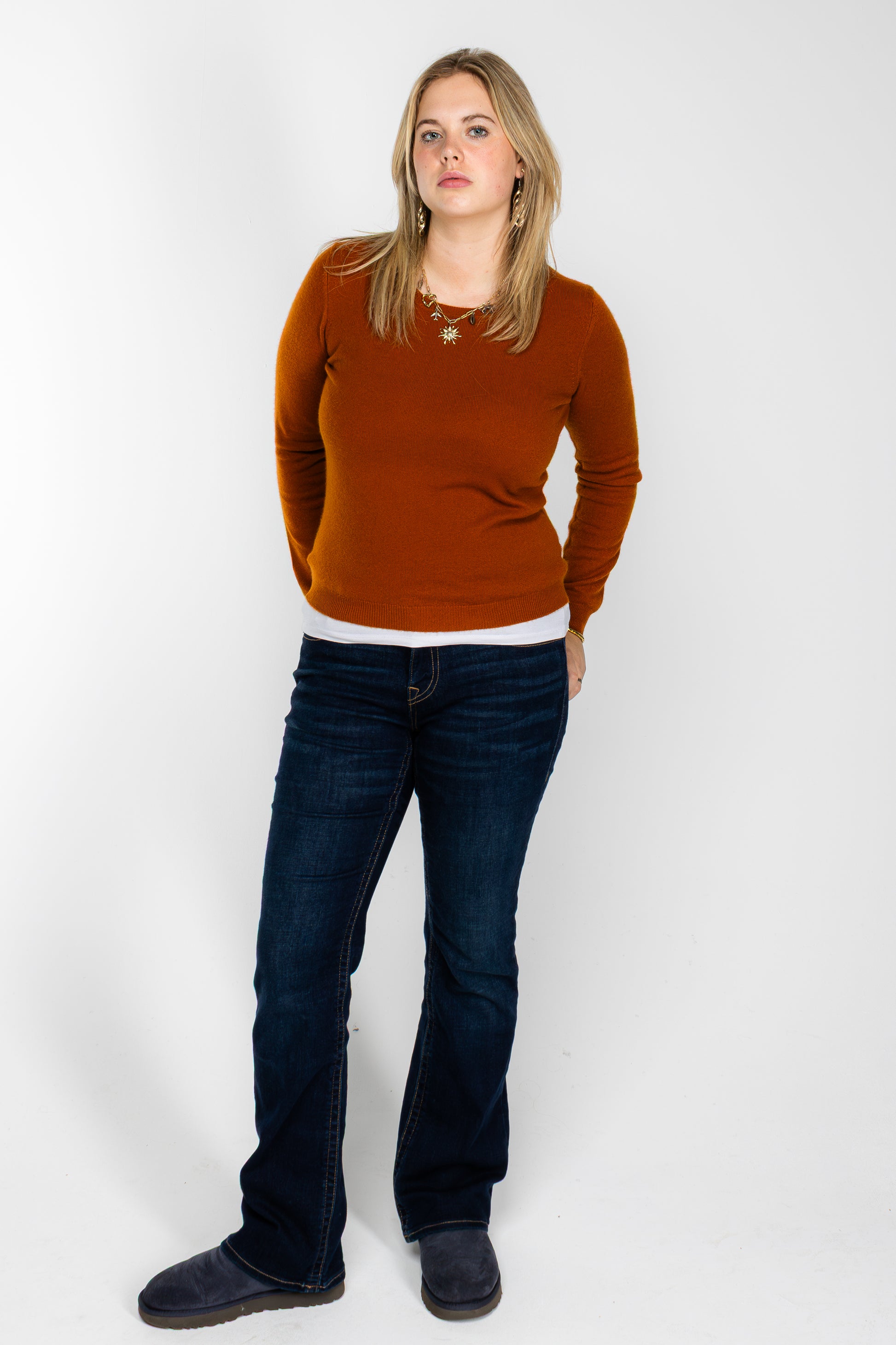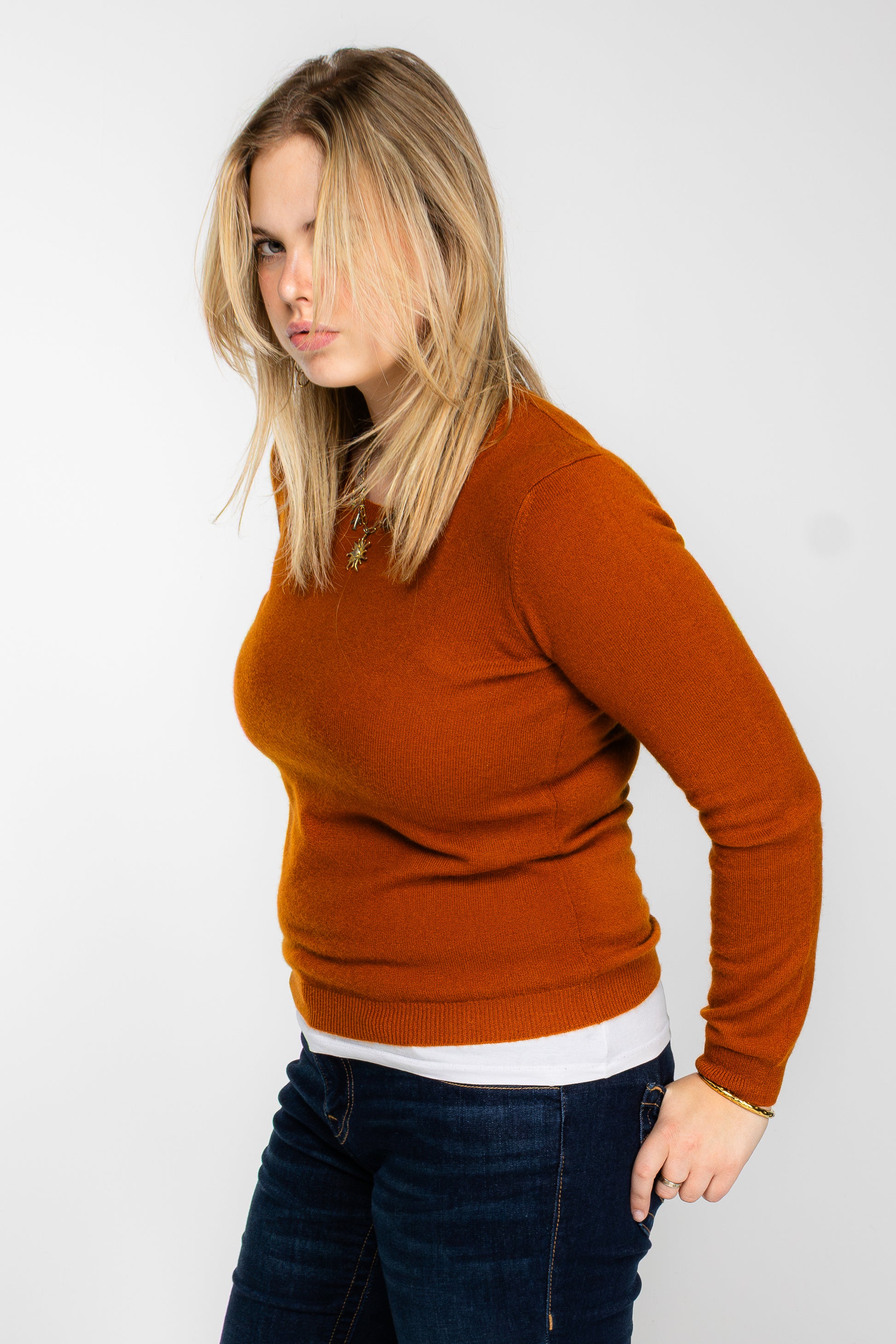 The Lumé Crew Deep Copper is the foundation of modern femininity — soft, effortless, and endlessly versatile. Crafted from fine, soft-touch knit, it’s designed for all-day comfort while maintaining a clean, graceful silhouette.